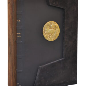 Volume con testo, 145 pagine, 50 x 35 cm, legatura editoriale in piena pelle con scultura in bronzo a basso rilievo di Guido Veroi applicata Volume con 26 tavole litografiche numerate I-XIV di Giorgio de Chirico conservate in una scatola lignea editoriale, precedute da un foglio di indice. Esemplare n. 598 su una tiratura di…