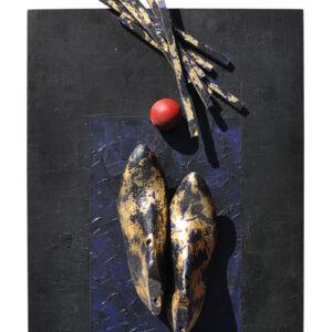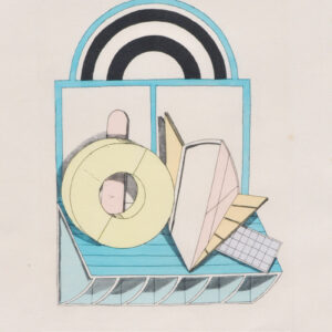 Olio e collage su cartone, 51 x 40 cm, lievi strappi ai bordiFirmaLsopera è accompagnata da autentica su fotografia dellsArchivio storico futuristi siciliani di Palermo a firma Salvatore Carbone e archiviata presso lo stesso archivioLsopera è uno dei primi dipinti del ciclo sFinestre sulla Sicilias con soggetto nature morte e strumenti musicali.Provenienza: Collezione privata