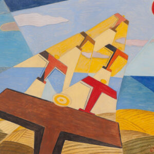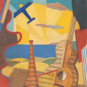 Giulio D,Anna – Stillleben mit Caproni-Flugzeug, um 1929/30Quick viewÖl und Collage auf Karton, 51 x 40 cm, kleine Einrisse an den RändernSigniertDem Werk liegt eine Echtheitsbestätigung auf Fotografie des Archivio storico futuristi siciliani von Palermo signiert von Salvatore Carbon, bei, registriert und archieviert ebendortDas Werk ist eines der ersten aus dem Zyklus ,Finestre sulla Sicilia, mit Stillleben und Musikinstrumenten.Provenienz: Privatsammlung