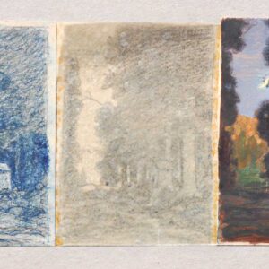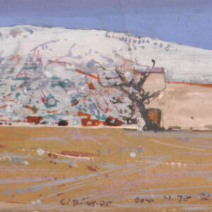Tempera cerata su carta, 6,7 x 16 cm,in corniceFirma, data e titoloBibl.: Karl Plattner. Bilder im Kleinformat/Ilpiccolo formato, edito da Galleria Goethe,Bolzano 2003, ill. p. 75Un paesaggio con casa abbandonata. Si vedono solamente tre fasce orizzontali, un albero, una casa. Si riesce a penetrarecon lo sguardo se la visione si fa più approfondita. Ciò che…