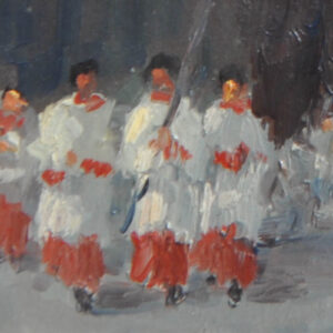 Rudolf Wacker – Nudo femminile in piediQuick viewSanguigno, 50 x 33 cm, in corniceMonogramma e data1911-14 Studia alla Scuola d’Arte di Weimar, tra gli altri, conA. Egger-Lienz. 1915-19 prigioniero di guerra in Siberia, vivea Berlino e torna a Bregenz nel 1924. Intorno al 1923 passadall’Espressionismo alla Nuova Oggettività, di cui diventa ilprincipale rappresentante in Austria. 1938 Perdita di tutte lefunzioni ufficiali e…