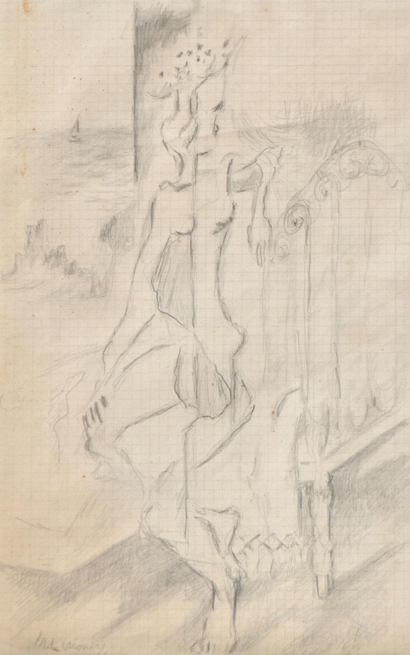 Bleistift auf kariertem Papier, 29,2 x 18,4 cm