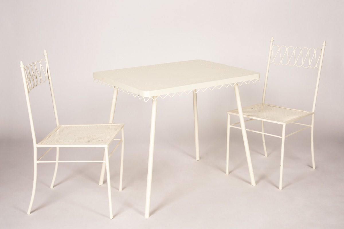 Italienische Manufaktur/Manifattura italiana – Gartentisch mit 2 Stühlen Hotel Bristol Meran, 1953/1954