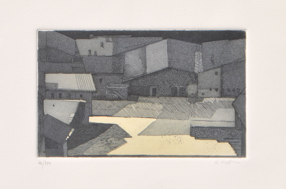 Aquatinta, 10,3 x 16,8 cm (Platte), 24,5 x 34,5 cm (Blatt), gerahmt