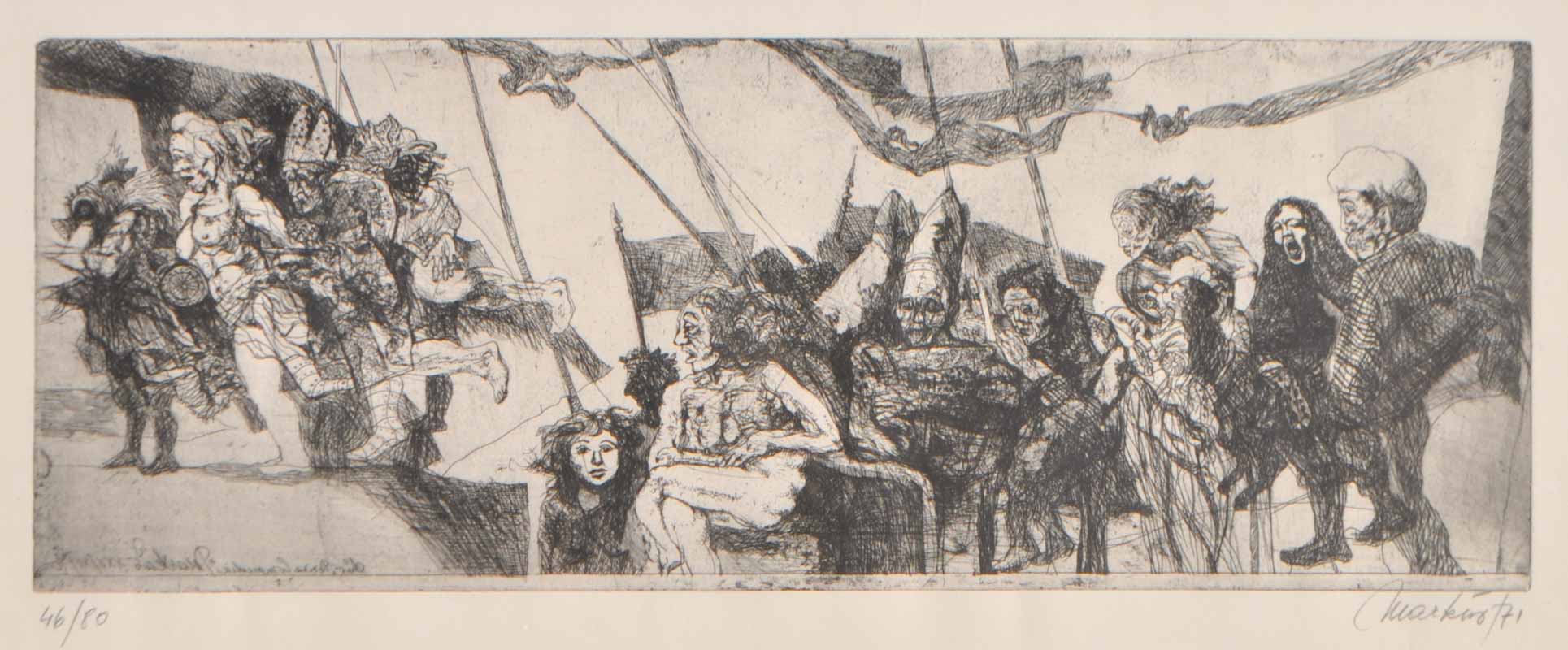 Radierung, 20 x 53,7 cm (Platte), gerahmt