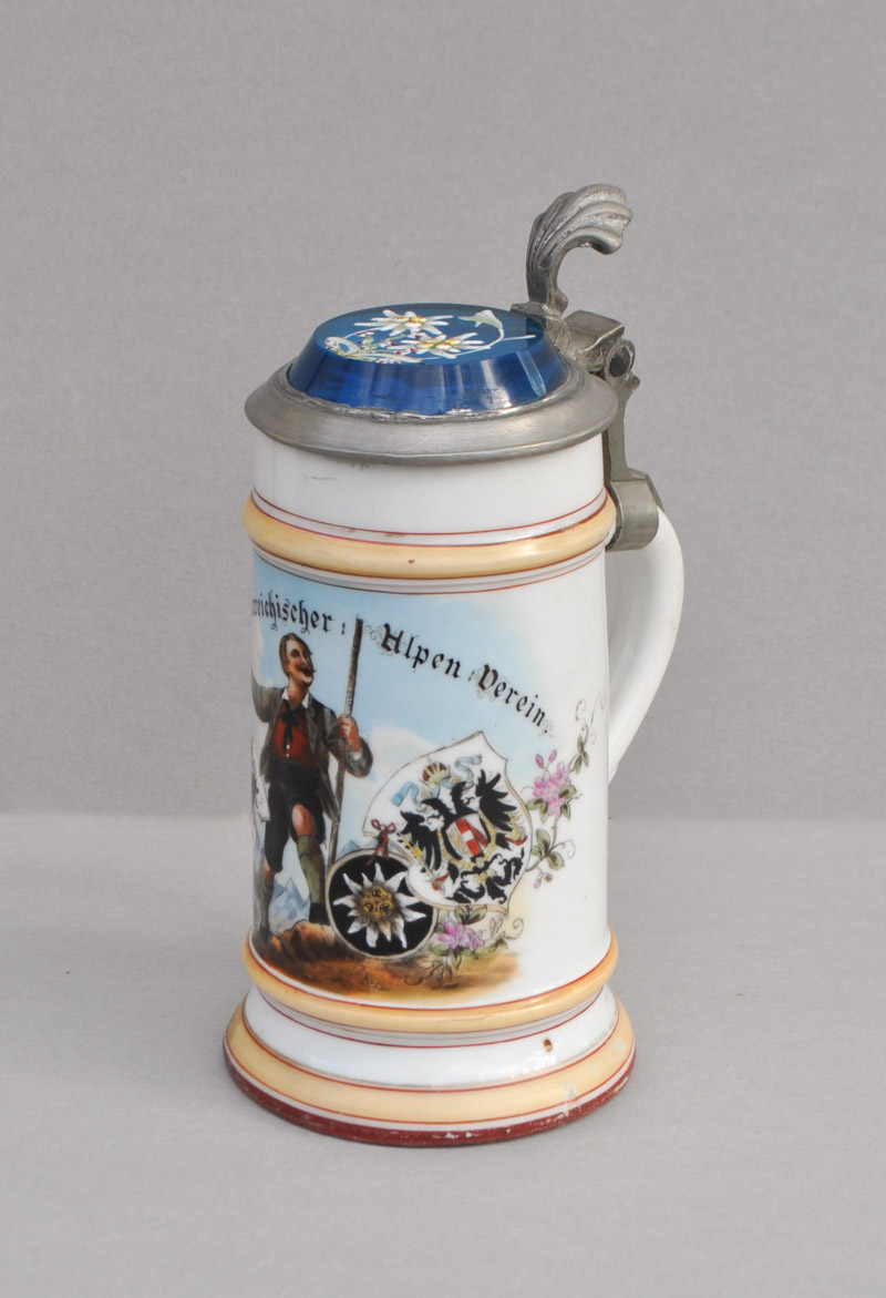 Porzellan, Zinn-Glas-Deckel, Höhe 21,5 cm