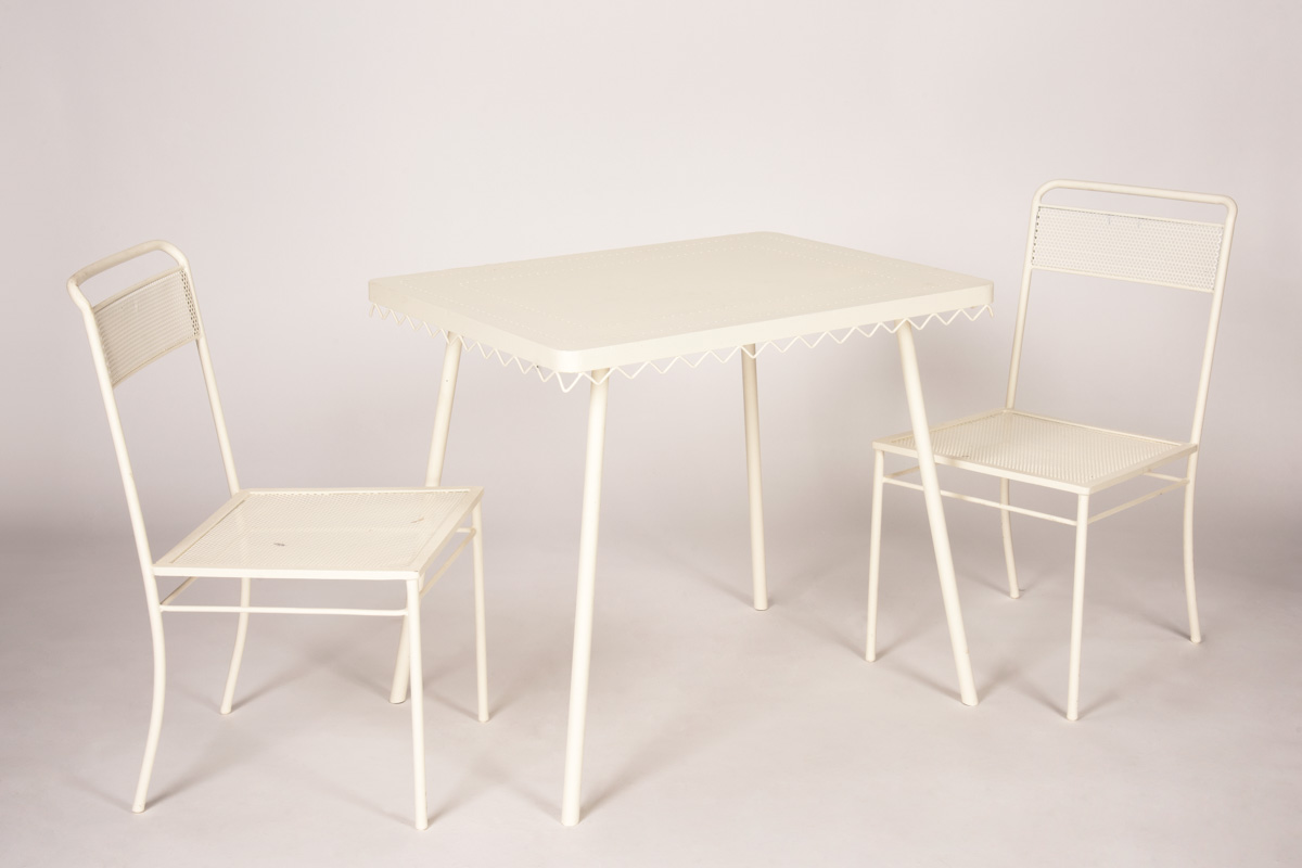 Ferro laccato color bianco, tavolo H. 80 x 60 cm, riverniciato