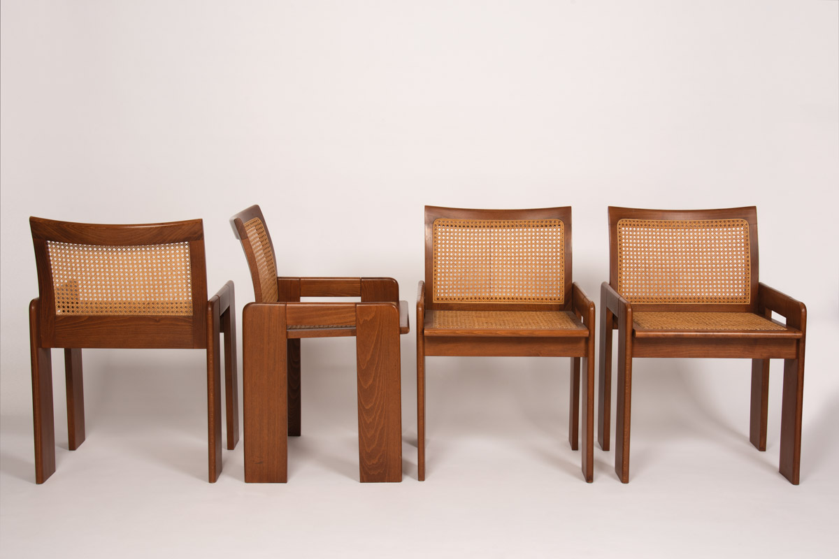 Struttura in legno, seduta e schienale in paglia di Vienna, h. 77 x 42 x 47 cm