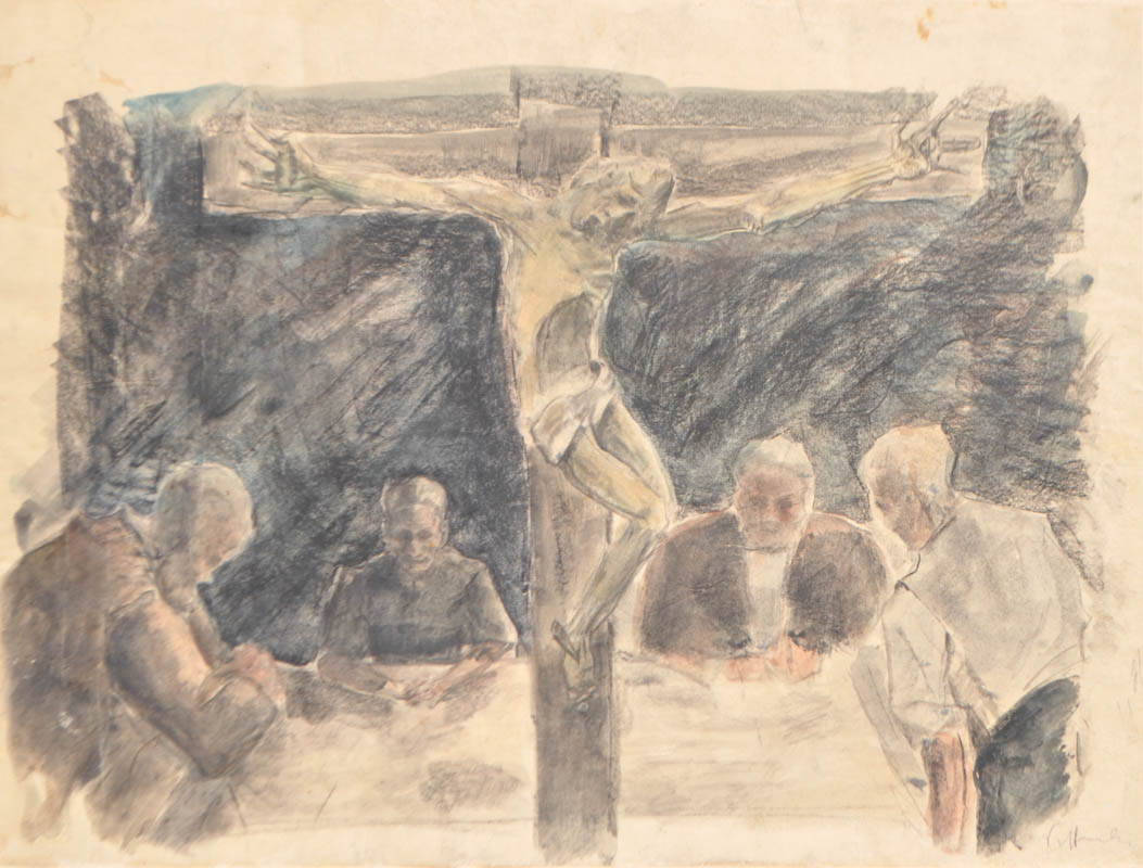 Carboncino, acquerello, 50 x 56,5 cm, in cornice