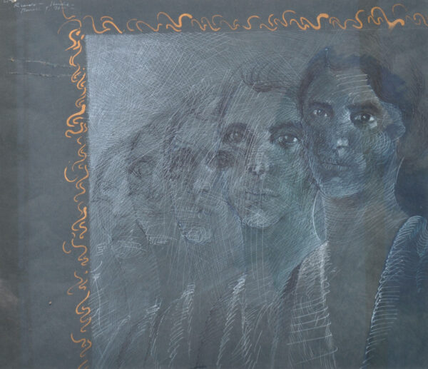 Tecnica mista su carta colorata, 44 x 51,5 cm, in cornice