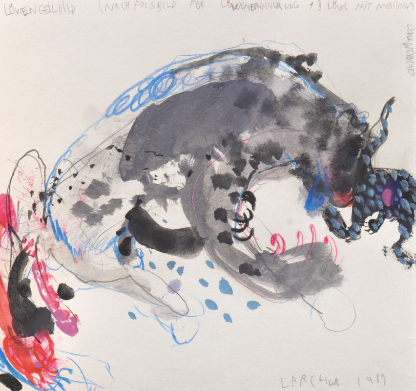 Peter Adrian Larcher – sLöwengeilbilds – Leone con donna in pelle alla moda, 1989