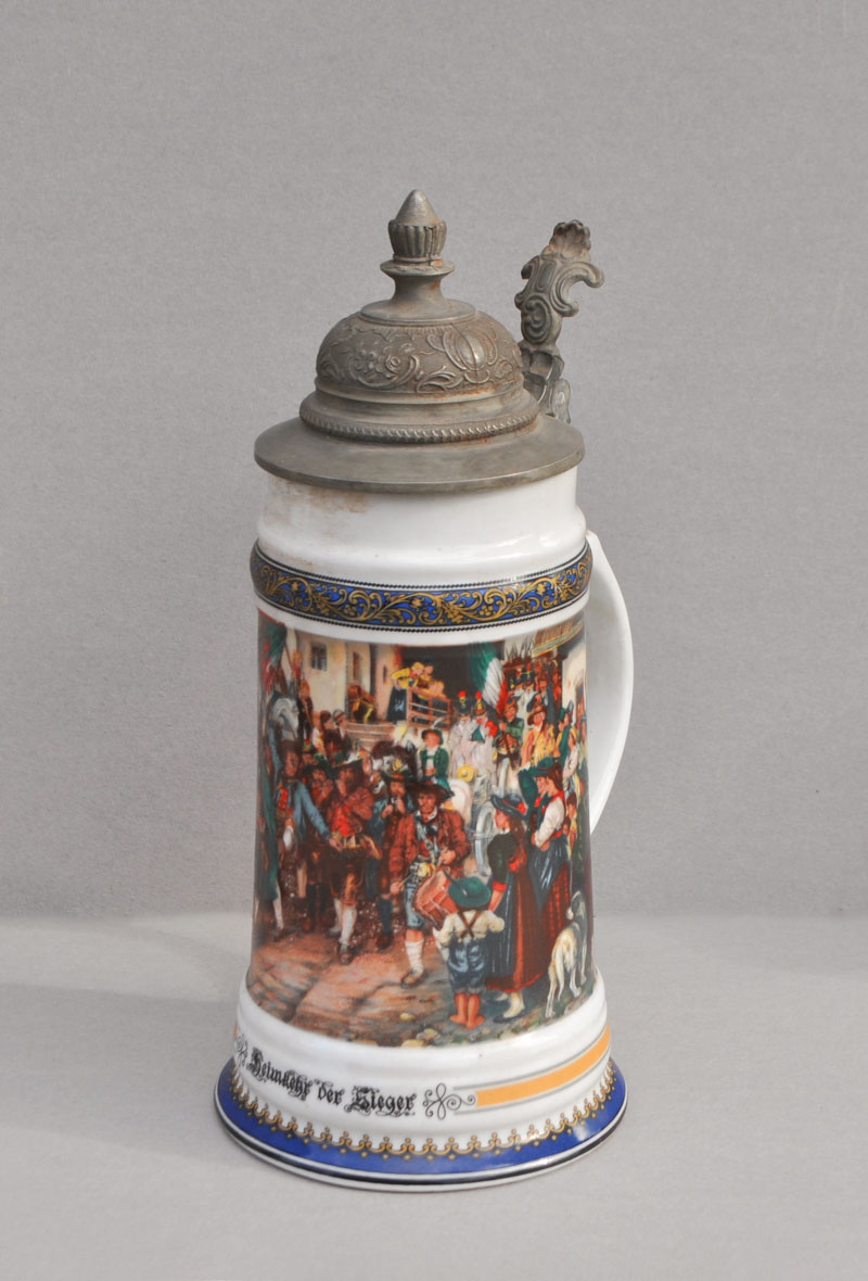 Anonym/Anonimo – Brocca in porcellana sHeimkehr der Siegers secondo Franz von Defregger, 1900 ca.