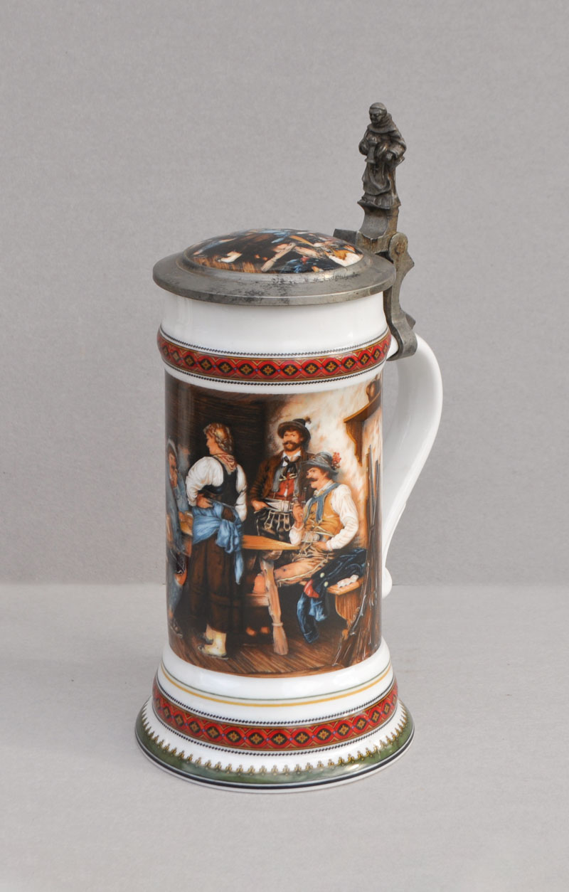 Porcellana, coperchio con montatura in stagno,